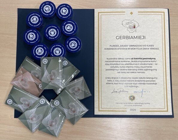 Plungės „Saulės“ gimnazijos IVg klasės komanda – Simonas Mitkus, Ervina Stulpinaitė, Gedas Andruška, Saulė Valančiutė, Orestas Vaitkus, Gerda Kidikaitė ir Gabrielė Petreikytė – dalyvavo Lietuvos Respublikos specialiųjų tyrimų tarnybos organizuotame antikorupcijos konkurse „Skaidrumą kuriame kartu 2025“.
