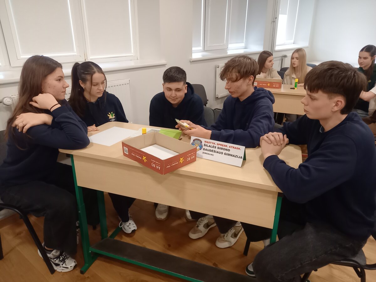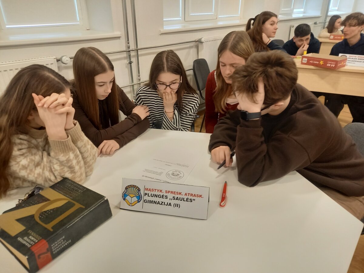 Plungės „Saulės“ gimnazijoje kovo 26 dieną vyko jau tradicija tampantis matematinis konkursas „Mąstyk. Skaičiuok. Atrask.“, kurį organizavo matematikos ir informatikos mokytojai. Renginys subūrė ne tik mūsų gimnazijos pirmokus, bet ir svečius iš kitų mokyklų. Jau antrus metus iš eilės savo gebėjimus kartu su mūsų mokiniais išbandė devintokai iš Rietavo Lauryno Ivinskio gimnazijos. Taip pat sulaukėme komandų iš Šilalės Simono Gaudėšiaus bei Plungės rajono Žemaitijos kadetų gimnazijų.