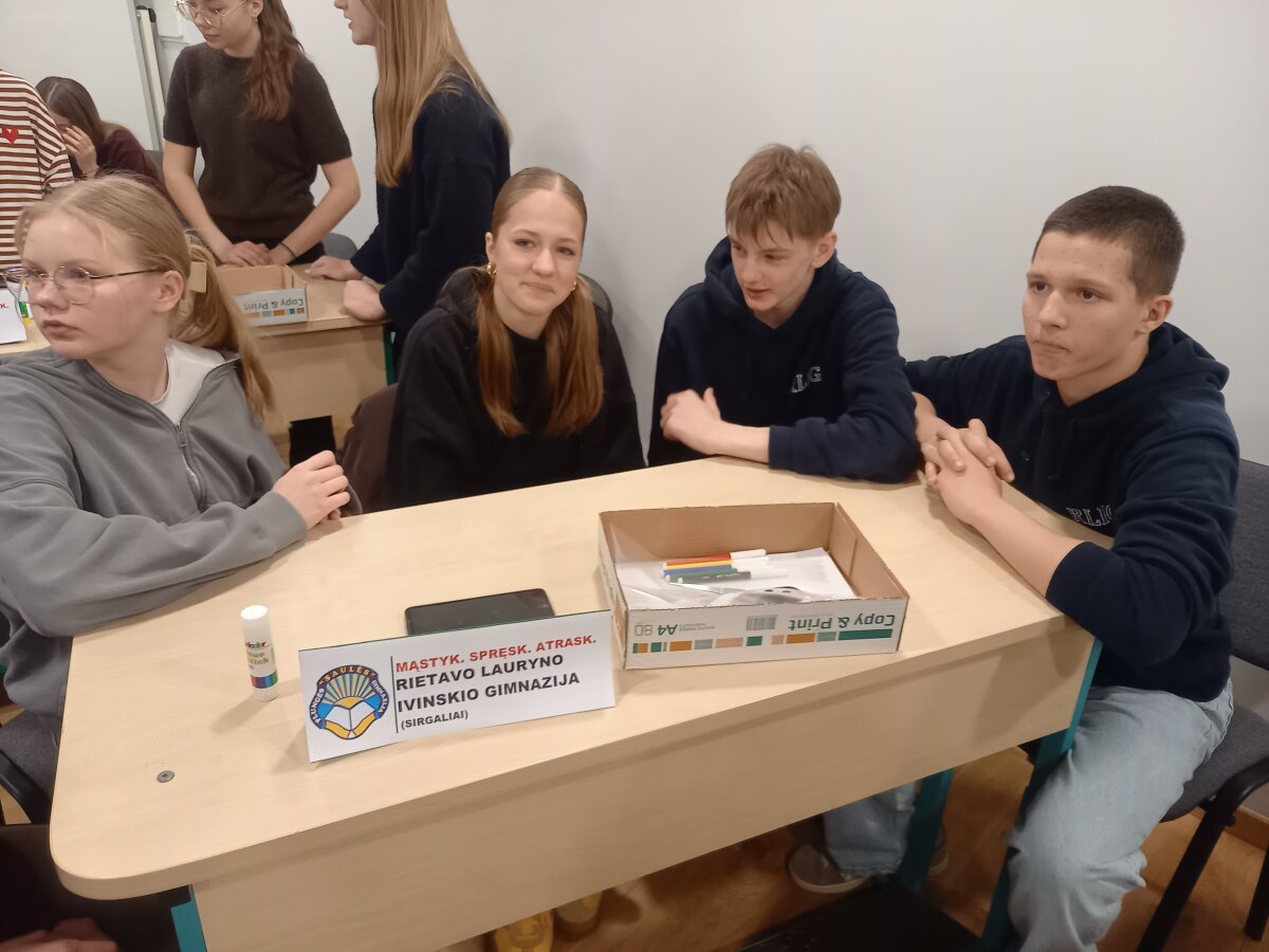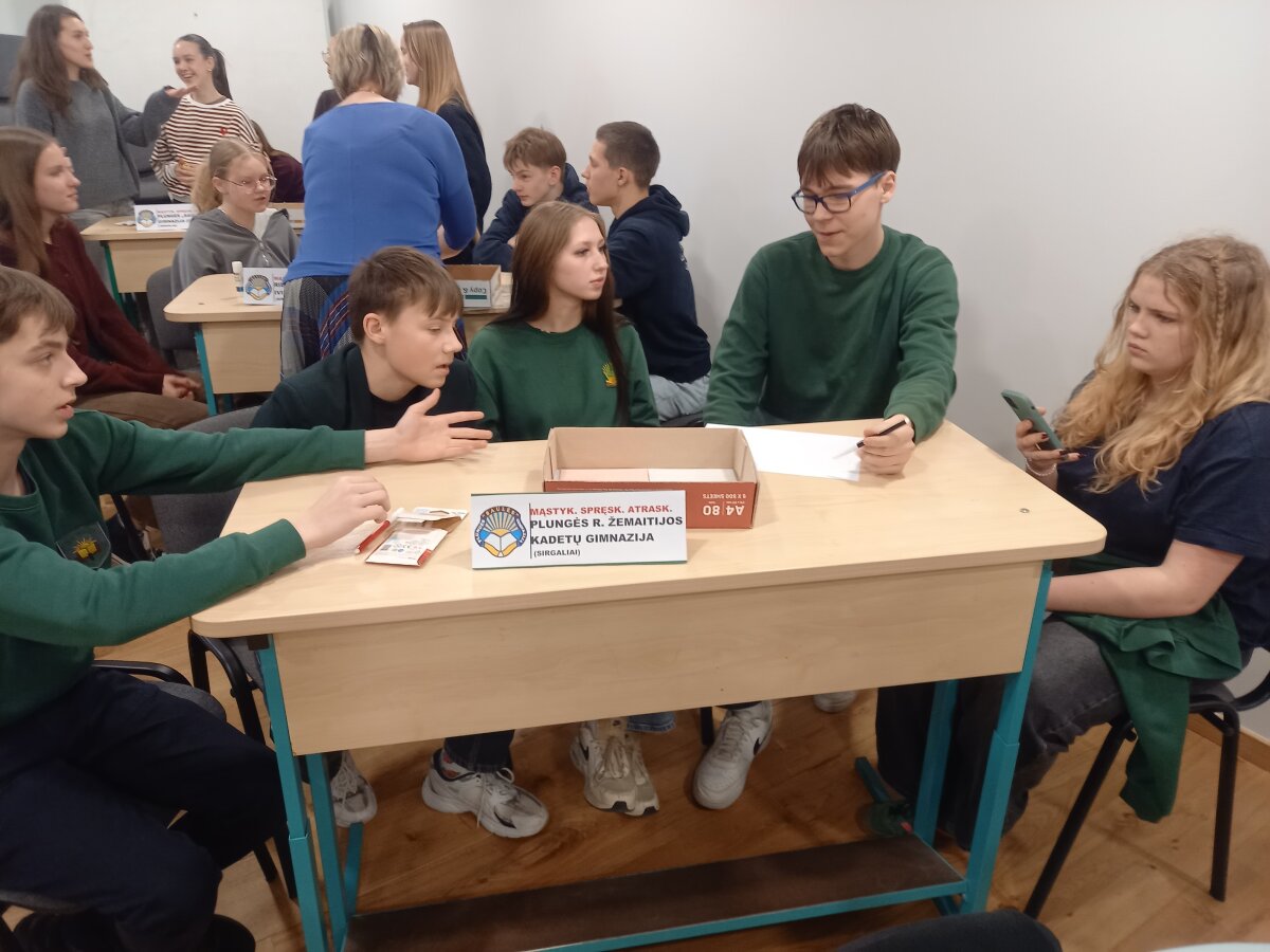 Plungės „Saulės“ gimnazijos IVg klasės komanda – Simonas Mitkus, Ervina Stulpina... -