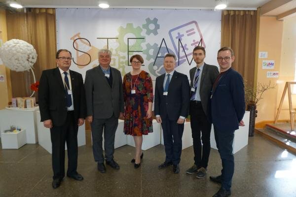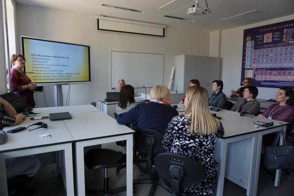 Mokytojams pranešimą „STEAM samprata ir ugdymo patirtis Lietuvoje” skaitė Plungės „Saulės” gimnazijos chemijos mokytoja metodininkė Sigita Žilinskienė ir biologijos vyresnioji mokytoja Dalia Daukšienė. Chemijos mokytoja metodininkė Sigita Žilinskienė atvykusius mokytojus supažindino su gamtos mokslų ir biotechnologijų kabineto panaudojimo galimybėmis ugdymo procese.
