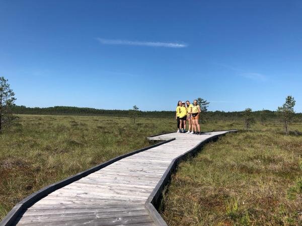 Pirmąją ekspedicijos dieną aplankėme Šaltiškių molio karjerą, Jurakalnio apžvalgos bokštą, kabantį tiltą, Penkiolikakamienę liepą, S. Daukanto paminklą, Kamanų rezervatą. Nakčiai apsistojome prie Žvelgaičio tvenkinio.