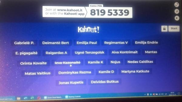 Gruodžio 21 dieną visi devintų klasių mokiniai dalyvavo projekto veikloje-konkurse „Kalėdinis matematinių terminų lietuvių-anglų kalbų žodynėlis”. Mokiniai „Kahoot” platformoje atsakinėjo į matematinius ir kalėdinius klausimus. Ia klasėje daugiausiai teisingų atsakymų surinko Adrija Donauskaitė, Eglė Sragauskaitė, Vismantė Vaserytė, Emilija Križevičiūtė ir Dominykas Dozorovas; Ib klasėje nugalėjo Kamilė Daržinskytė, Jonas Kupetis, Martyna Katkutė, Mantas Chraptavičius ir Emilija Pigagaitė; Ic klasėje daugiausiai atsakymų žinojo Ema Junel, Rimvydas Lukošius, Aivaras Šilinskas, Gabija Žukauskytė ir Edvinas Šlyžius; Id klasėje geriausiai pasirodė Mantas Leliuga, Deimantė Lukauskaitė, Emilija Toleikytė, Titas Mažulis ir Vincas Pakalniškis. Kiekvienos klasės laimėtojai, pasibaigus karantinui, bus apdovanoti sertifikatais ir mažais projekto prizais. „Kahoot” užduotį ruošė ir veiklą organizavo mokytojos Ligita Erminaitė ir Jolanta Mažuknė. Dėkojame mokytojoms Aušrai Latakei, Sigitai Betingei ir Staselei Kajutienei už pagalbą.