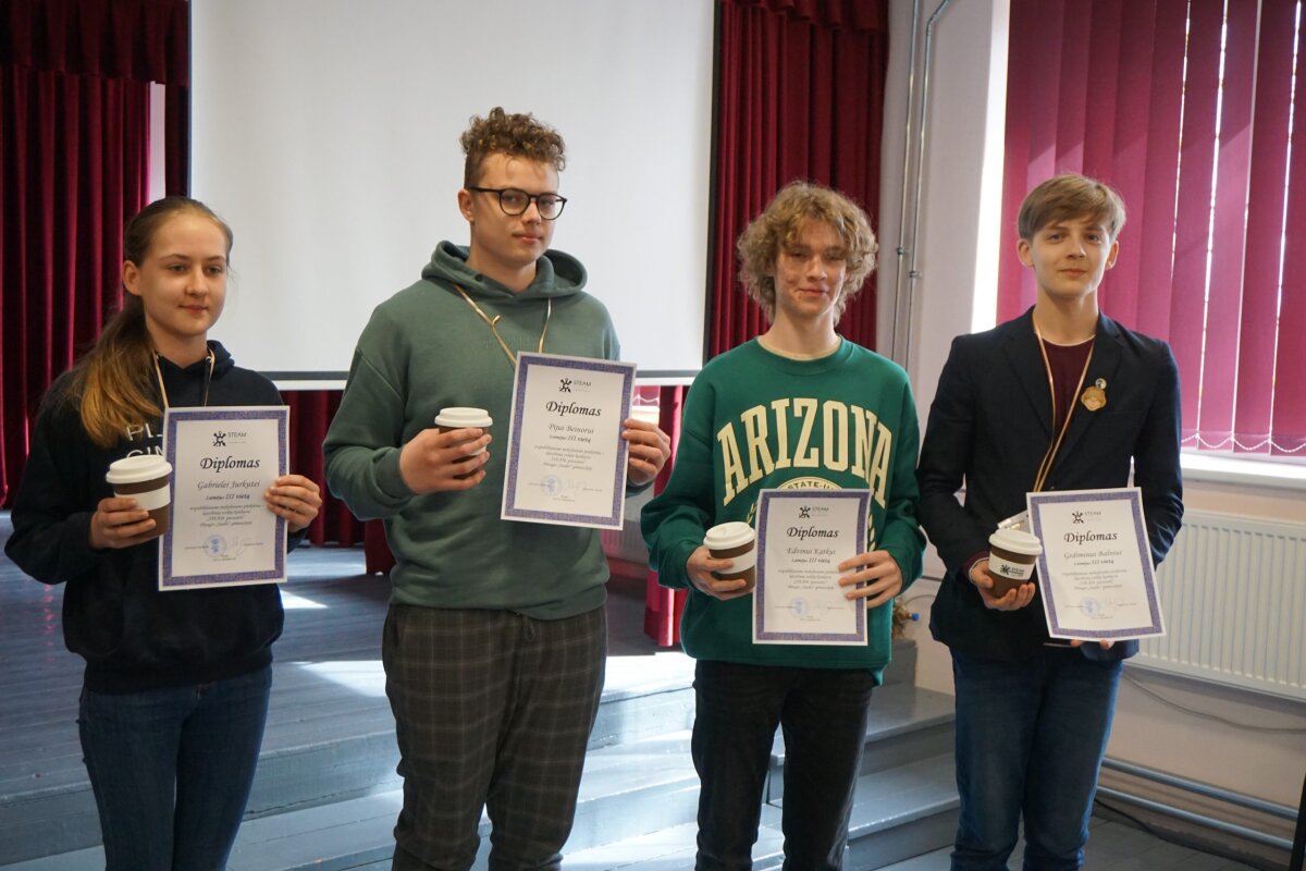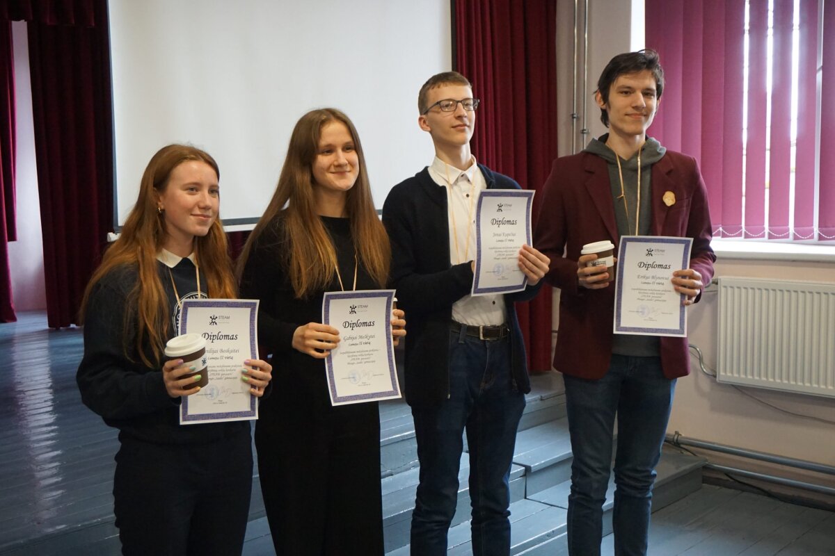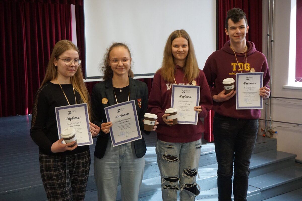 Paskelbus rezultatus, įteikus padėkas ir prizus I, II, III vietų laimėtojams, išdalinus mokytojams konkurso darbo grupės paruoštus „STEAM PAVASARIO“ užduočių sąsiuvinius, visi dalyviai ir organizatoriai buvo pakviesti įamžinti šią akimirką bendra nuotrauka. Nors lauke pūtė žvarbus pavasarinis vėjas, nuo gerų emocijų, klegesio, šiluma pulsuojančios atmosferos buvo jauku.