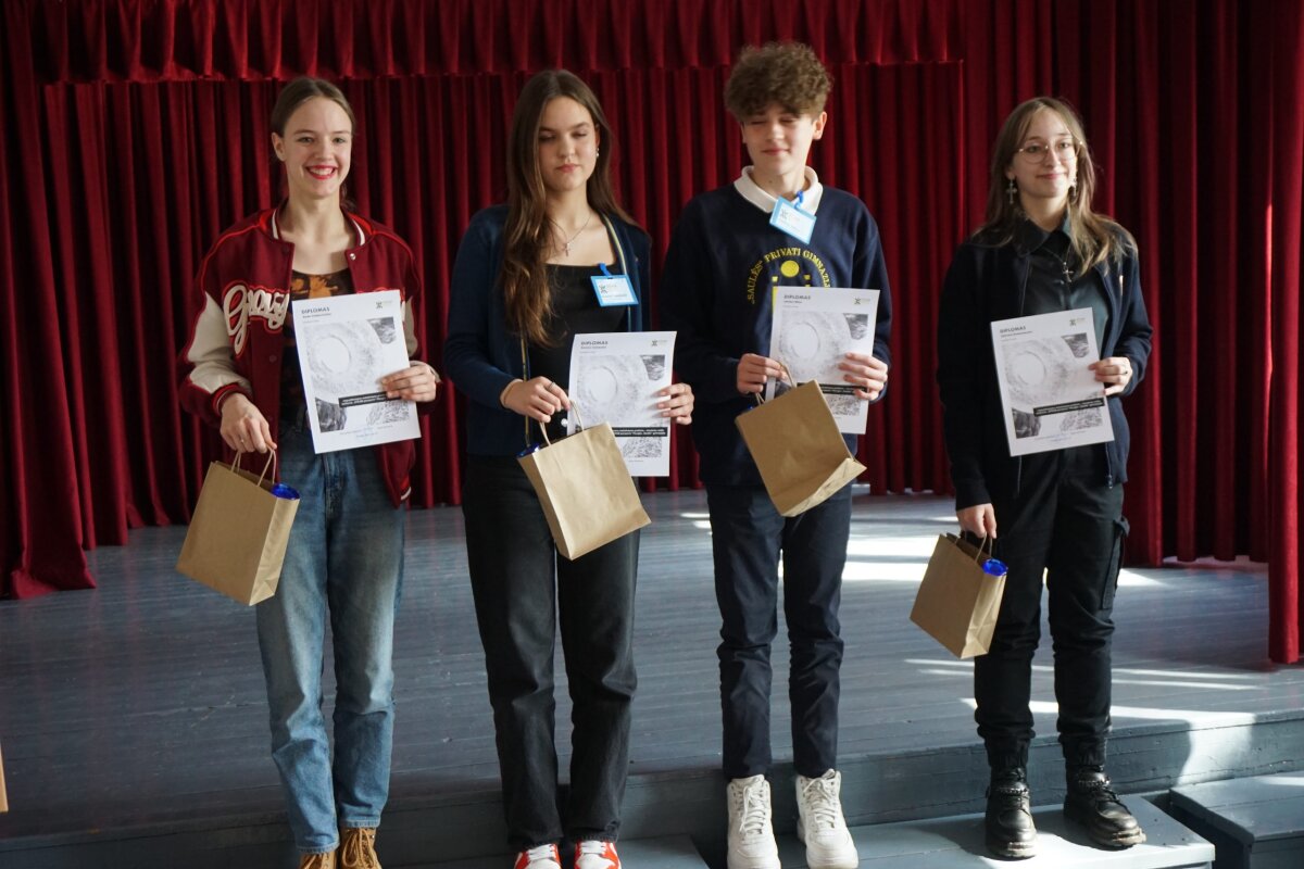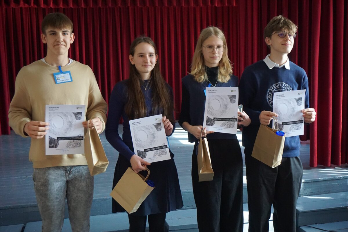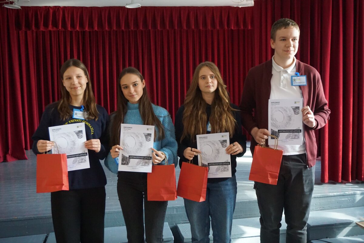 I vieta – Viltė Markevičiūtė(Jonavos Senamiesčio gimnazija),Faustas Stadalninkas(Klaipėdos licėjus),Austėja Ročiūtė(Plungės „Saulės“ gimnazija),Vilius Bazaras(Vilniaus „Saulės“ privati gimnazija).