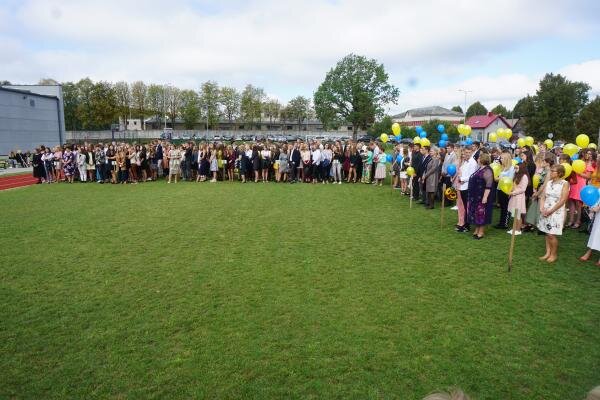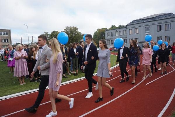 Šiltą, bet apsiniaukusį Rugsėjo 1-osios rytą mokiniai ir mokytojai skubėjo į pir... -