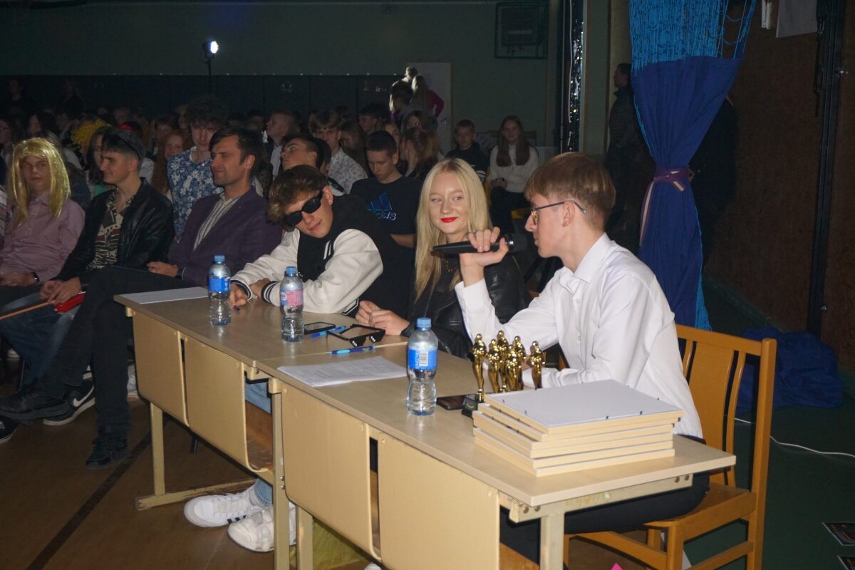 ,,Bendruomeniškumo šou“ dalyvavo ir naujuosius gimnazijos bendruomenės narius pasveikino gimnazijos prezidentė Ula Trilikauskaitė. Pasirodymus ir užduočių atlikimą atidžiai stebėjo komisija, kurios nariai buvo labai kompetentingi ir šmaikštūs. Jie negailėjo atlikėjams pagyrų ir labai teisingai nusprendė, kokių apdovanojimų nusipelnė visų I klasių mokiniai.