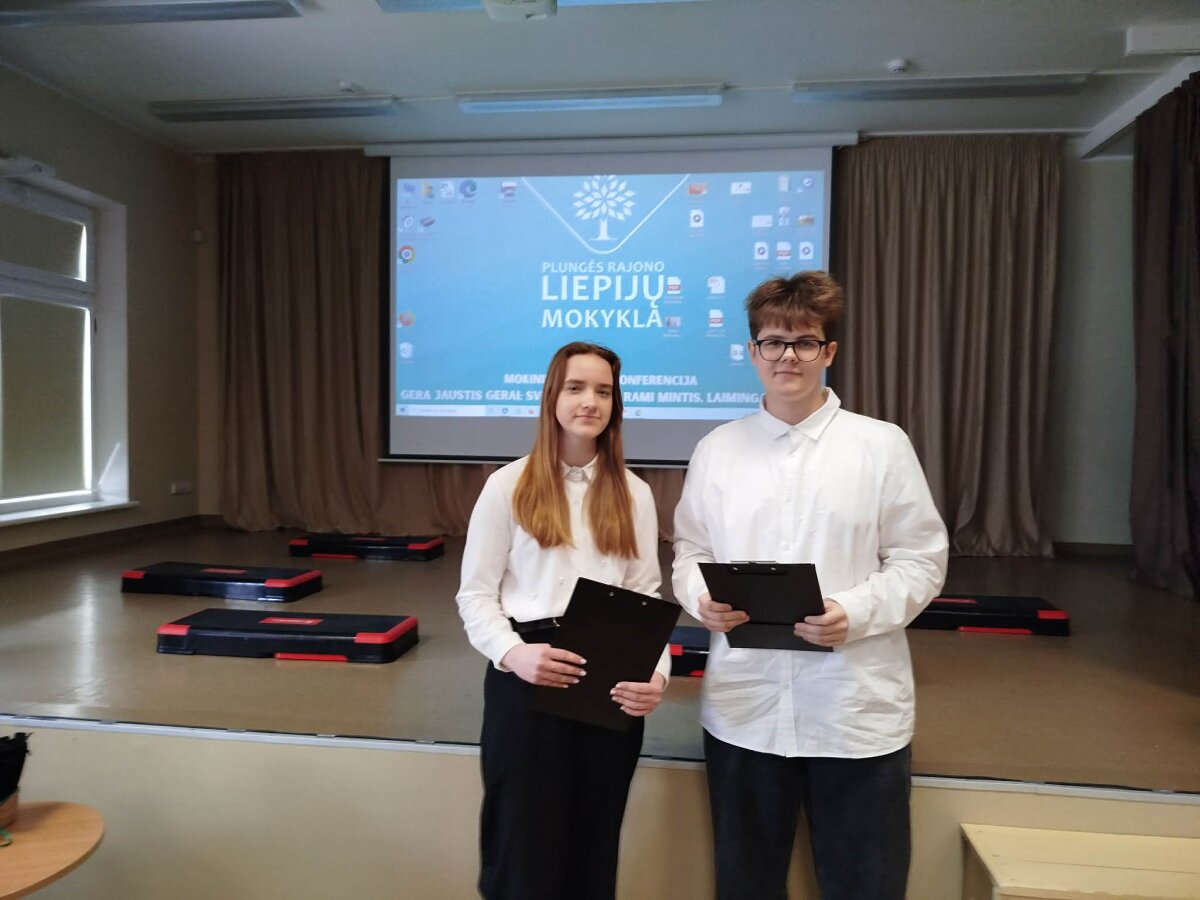 Kovo 25 dieną mūsų gimnazistai dalyvavo Žemaitijos regiono ugdymo įstaigų mokinių praktinėje konferencijoje„Gera jaustis gerai: sveikas kūnas, rami mintis, laiminga širdis“, kurią organizavo Liepijų mokykla. Buvo pristatyti net du pranešimai. L. Kaunaitė, J. Vasiliauskaitė ir J. Galminas (visi mokosi I c klasėje) skaitė pranešimą ,,Sėkmės formulė‘‘. Mokiniai atliko praktinį tyrimą apie I-okų emocinę, psichinę ir fizinę sveikatą bei savijautą gimnazijoje. Konferencijoje pristatė tyrimo rezultatus ir pateikė pasiūlymus, kaip gerinti mokinių psichinę, emocinę bei fizinę sveikatą. Jiems pasirengti padėjo socialinė pedagogė A. Vaškienė ir istorijos mokytoja, socialinė pedagogė D. Vengalė. Kitas pranešimas buvo apie tai, kaip sveiką gyvenimą matė ir propagavo visiems gerai žinomi lietuvių rašytojai. Pranešimą pristatė B. Laivytė, E. Juškevičiūtė, S. Vaitkevičiūtė (visos II d kl. mok.) ir P. Gelumbickytė (I c kl. mok.). Jų pranešimo pavadinimas „Gera savijauta rašytojų požiūriu: M. Valančius, Vydūnas, Šatrijos Ragana‘‘. Merginos gilinosi į šių trijų rašytojų supratimą apie tai, kas daro žmogų sveiką ir laimingą. Joms pasiruošti padėjo mokytojos A. Gramauskaitė ir R. Česnauskienė. Džiaugiamės, kad mūsų gimnazistai aktyviai įsijungia į rajone organizuojamų konferencijų veiklą. Taip ugdomas pilietiškumas, bendruomeniškumas, viešojo kalbėjimo įgūdžiai.