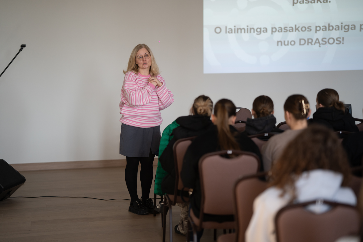 Tuo metu mokytojai taip pat turėjo galimybę praplėsti savo žinias – jie klausėsi karjeros konsultantės, edukologės, Lietuvos karjeros specialistų asociacijos vadovės Giedrės Valaitienės paskaitos ,,Karjeros pasirinkimai klasėje: ką gali mokytojas ir specialistas?“